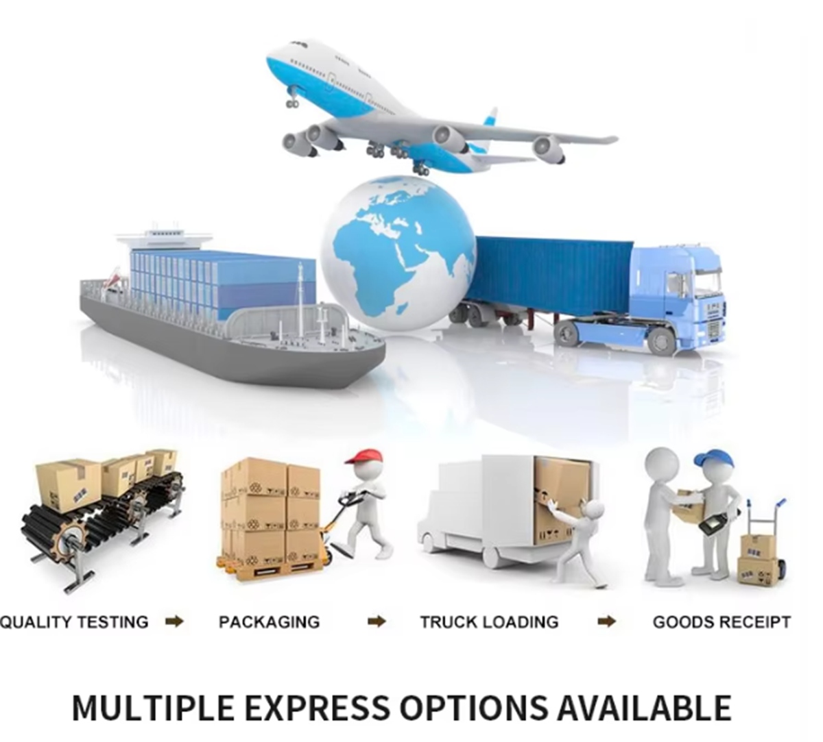 Diversas opciones de envío, incluyendo transporte marítimo, aéreo y terrestre.